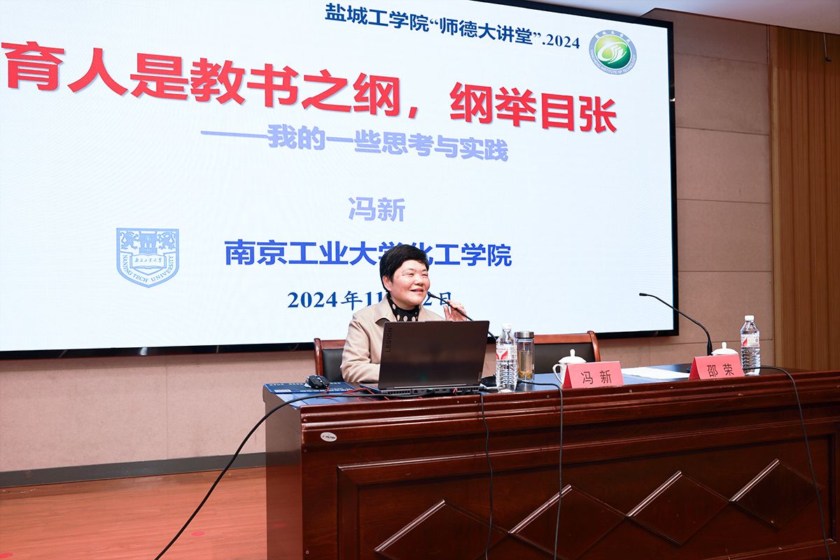 11月22日下午,在希望大道校区机械馆报告厅,“感动江苏教育人物——2018最美高校教师”、庆祝中华人民共和国成立70周年纪念章获得者、江苏省高校优秀共产党员、南京工业大学“师德楷模”、南京工业大学“师德十佳”冯新教授应邀作客我校师德大讲堂,作题为《育人是教书之纲,纲举目张》的主题报告。校长、党委副书记邵荣主持报告会。各二级学院党政负责人、教科研办公室主任、专业系主任、课程组组长、实验中心主任、教师代表及2023年新入职教师等近300人聆听报告。
