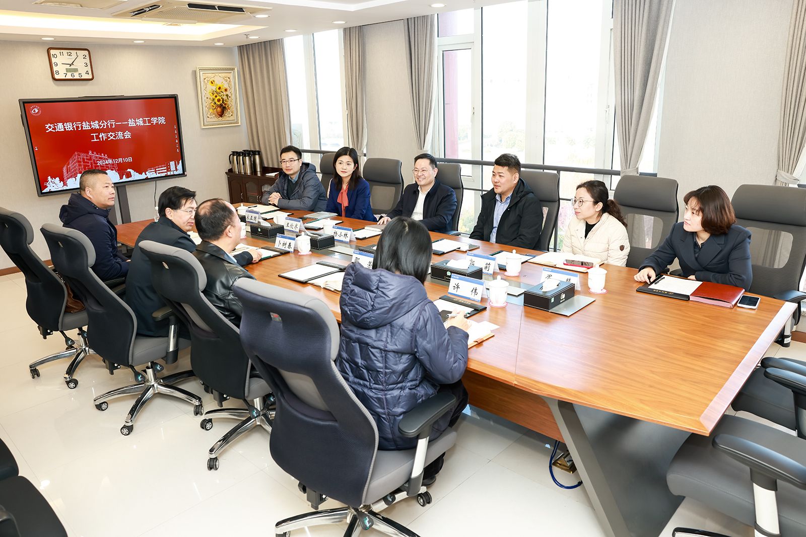 12月10日上午,交通银行盐城分行党委书记、行长杨小林,党委委员、副行长孙友平、王欣齐一行来校座谈交流,校长、党委副书记邵荣热情接待。