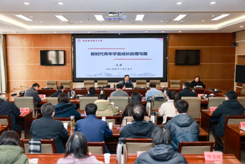 12月15日下午,在希望大道校区行政楼9楼视频会议室,教育部长江学者特聘教授、国家级教学名师、南京航空航天大学马克思主义学院博士生导师王岩教授应邀来校作题为“新时代青年学者成长的理与路”的报告。校党委副书记薛浩,党委常委、纪委书记、省监委派驻监察专员陈伟出席。社会科学处、马克思主义学院相关负责人、专兼职教师、同等学力博士班学员50余人参加。马克思主义学院党总支书记、常务副院长胡凌霞主持。