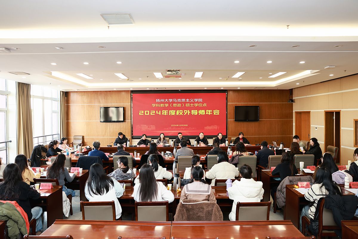 12月28日,由我校马克思主义学院、社科处承办的扬州大学马克思主义学院学科教学(思政)硕士学位点2024年度校外导师年会,在希望大道校区行政楼9楼视频会议室举行,校党委副书记薛浩出席会议并致辞。马克思主义学院党总支书记、常务副院长胡凌霞主持年会开幕式,扬州大学马克思主义学院副院长张锋主持研讨报告环节。