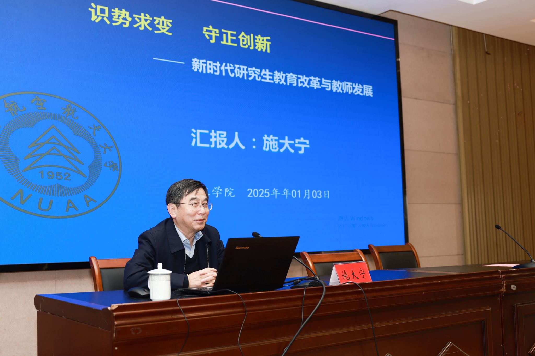 为全面贯彻落实全国研究生教育会议精神,增强研究生导师教书育人的责任感与使命感,提升研究生导师的育人能力,提高研究生培养质量,1月3日下午,我校研究生导师培训开班仪式暨导师培训会在希望大道校区机械馆报告厅举行。党委副书记、校长邵荣出席并讲话,党委常委、副校长张勤芳主持。国家级教学名师、南京航空航天大学副校长施大宁教授受邀作专题报告。2024年新增研究生导师,研究生院负责人及相关人员、各培养单位分管领导、研究生秘书参加培训。