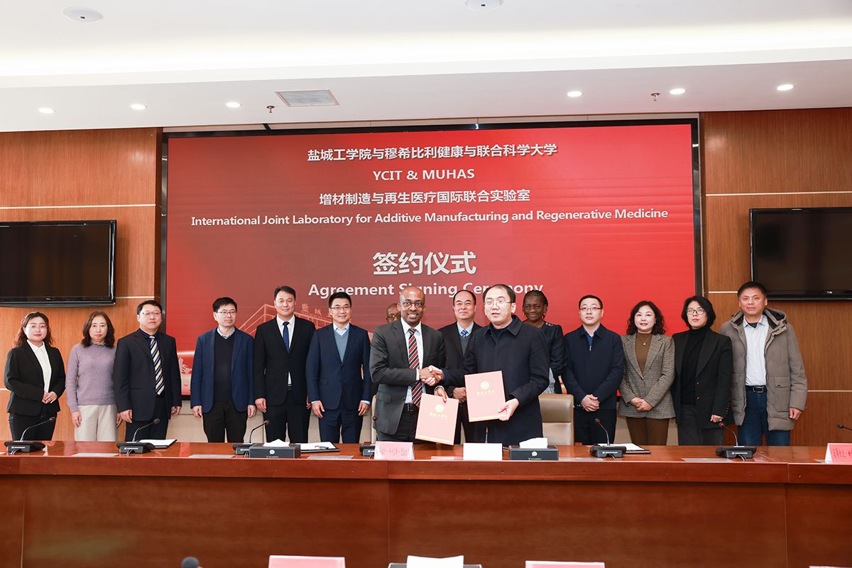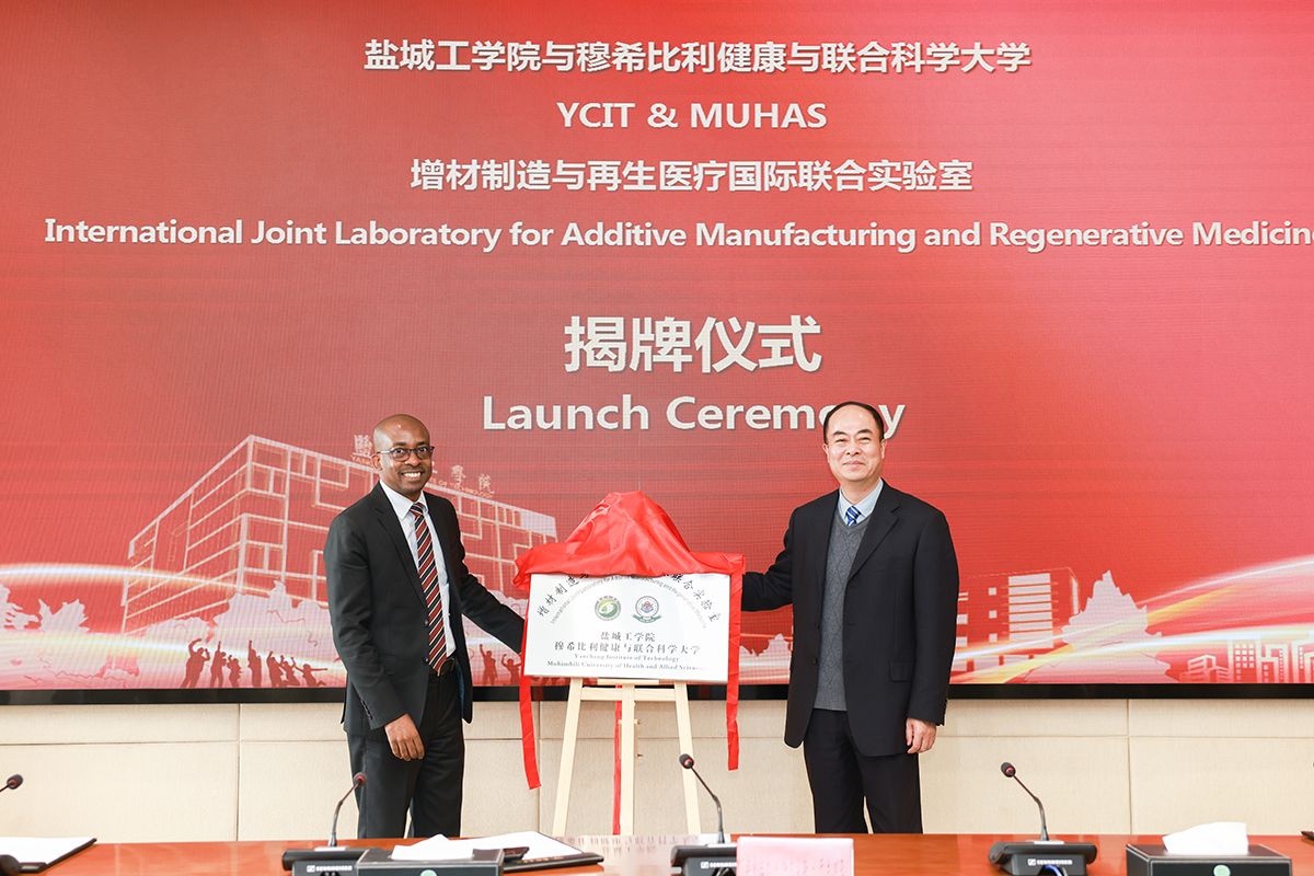 1月6日上午,学校与坦桑尼亚穆希比利健康与联合科学大学共建“增材制造与再生医疗国际联合实验室”签约揭牌仪式在希望大道校区行政楼9楼会议室隆重举行。校长、党委副书记邵荣,副校长、盐城市政协副主席丁成,党委常委、副校长王伟,坦桑尼亚穆希比利健康与联合科学大学副校长Emmanuel Cornelius Balandya、齿科学院院长Ferdinand Mabula Machibya、齿科学院前院长Matilda Mtaya Mlangwa,盐城市科技局副局长王兆军、对外合作处处长刘茜怡出席,我校科技处、国合处、机械优集学院负责人参加会议。