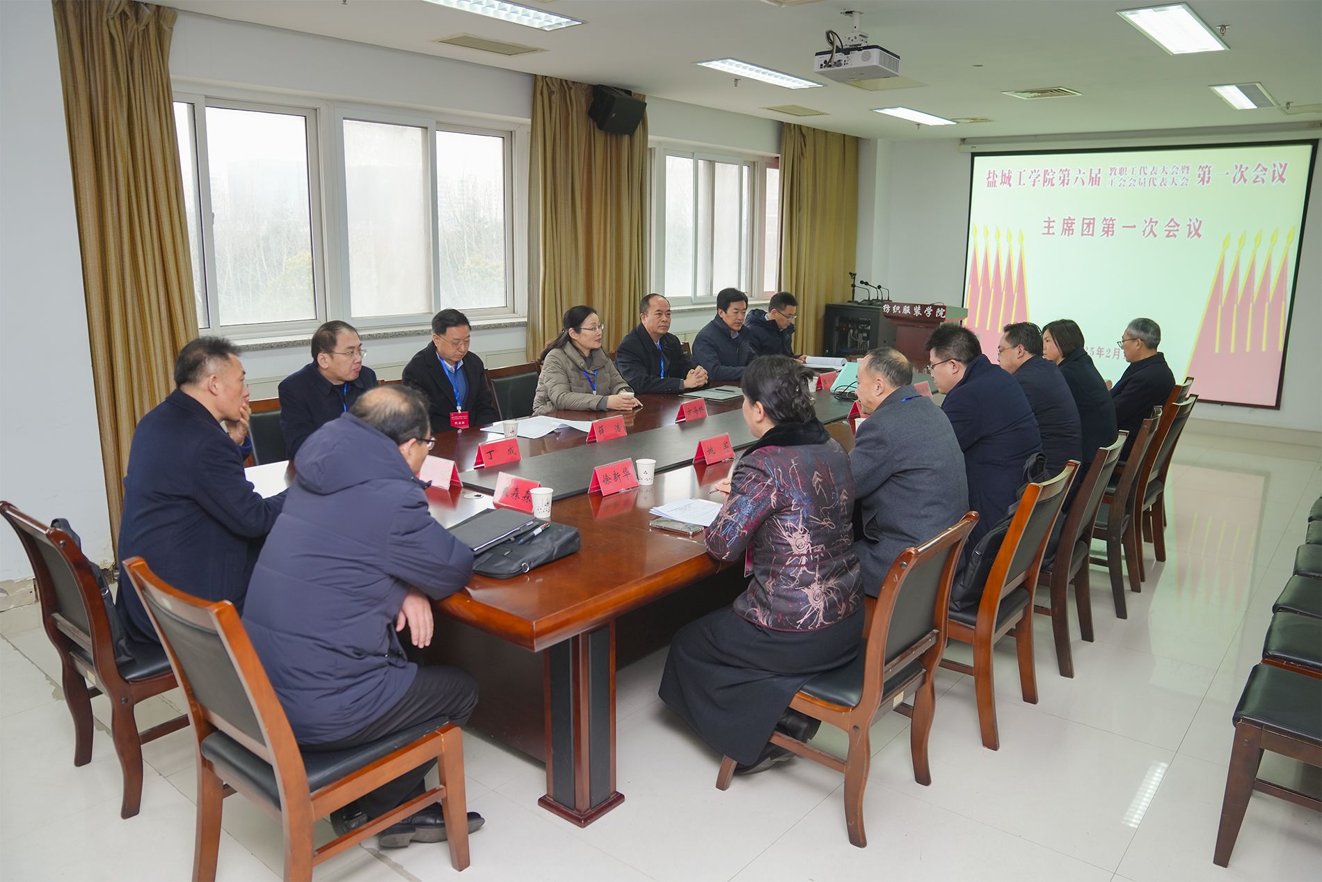 随后,主席团全体成员在纺服学院三楼会议室召开第一次会议,讨论通过了第一次全体会议议程和大会执行主席分组名单。丁成等29位同志当选为大会执行主席。