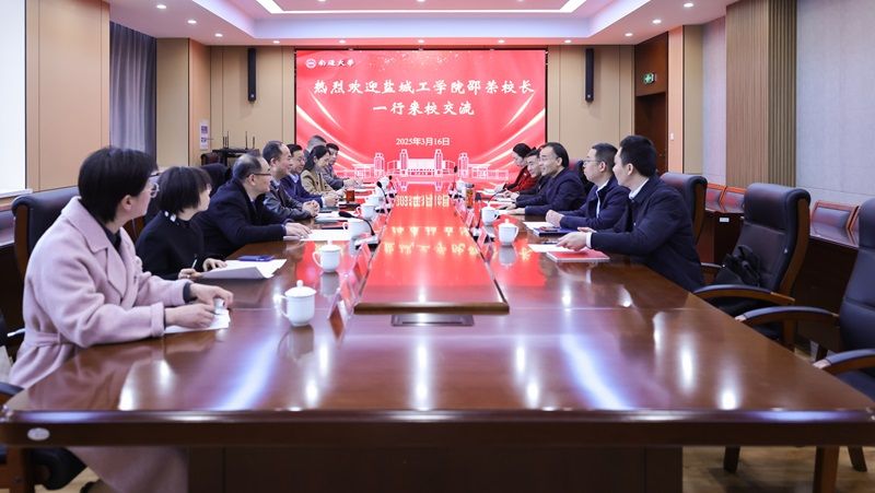 在南通大学,党委书记、校长杨宇民,党委常委、副校长陆俊杰等对我校一行表示热烈欢迎,并介绍了学校历史沿革、发展情况、办学成效以及“名城育名校、名校润名城”等相关工作。邵荣对南通大学的热情接待表示感谢,他指出,南通大学历史悠久、底蕴深厚,近年来围绕“建设特色鲜明的国内一流大学”发展势头迅猛,取得了令人瞩目的成绩,很多先进经验对我校建设一流应用型大学提供了参考与借鉴。他希望两校进一步深化传统友谊,在改革发展、校地合作、人文社科研究、招生就业等领域进一步加强交流与合作,携手同行,共谋发展,实现新的突破。