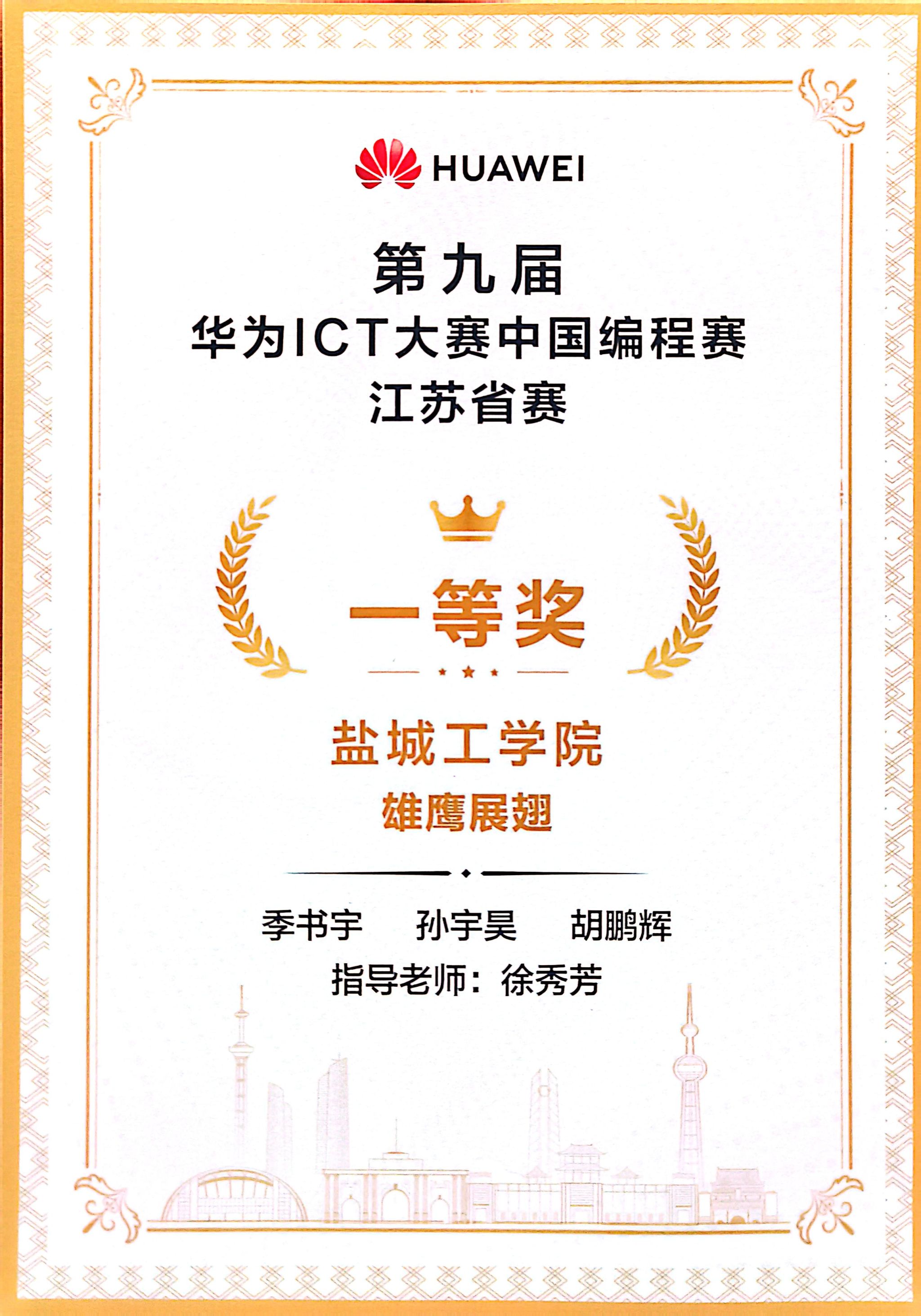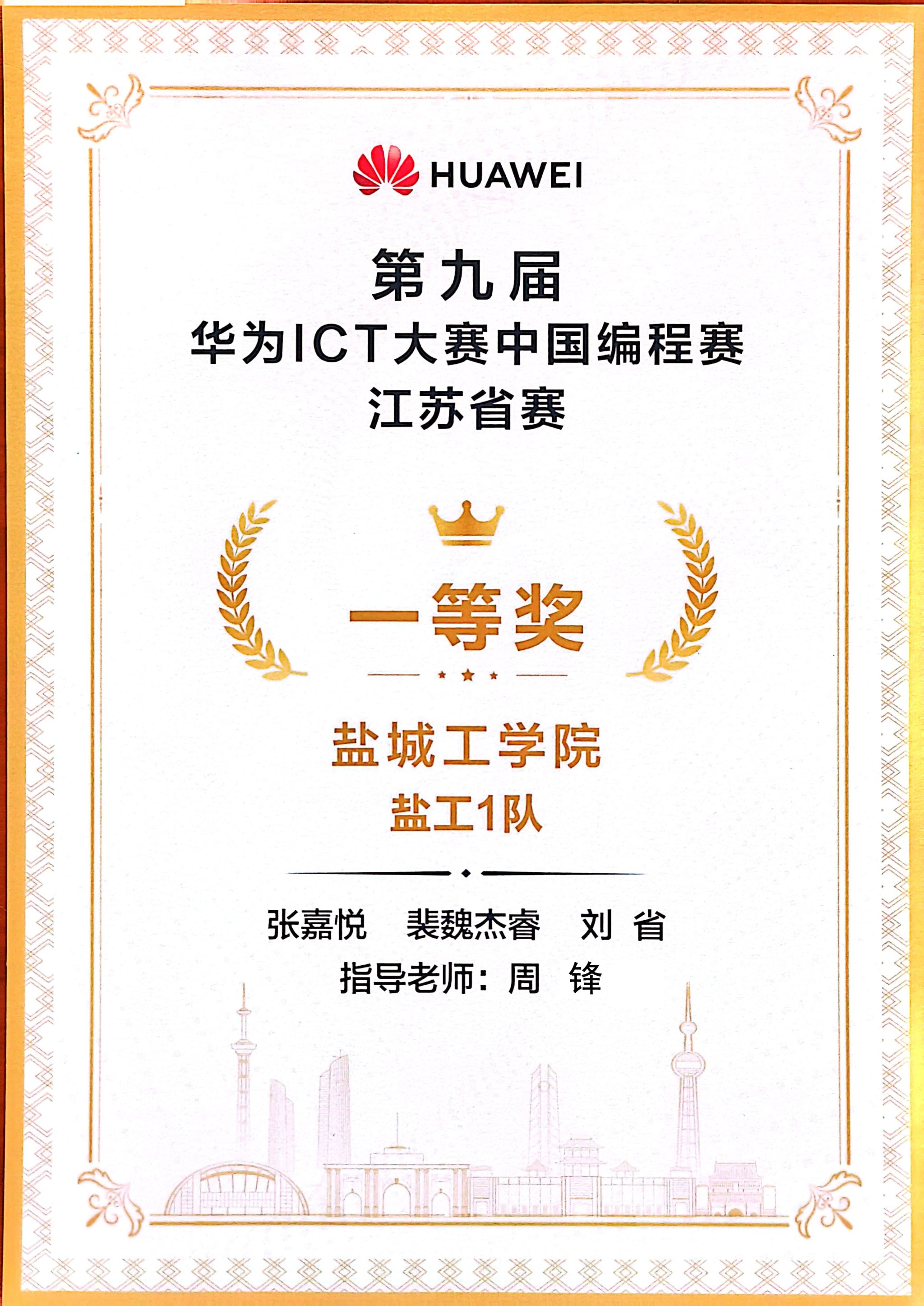 第九届华为ICT大赛中国编程赛—江苏省赛一等奖