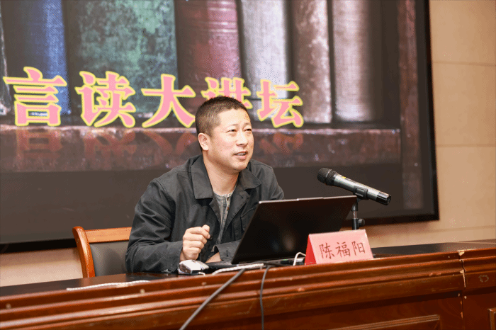 启动仪式后,设计艺术学院陈福阳老师在“青衿湖言读大讲坛”作《建筑美学的情感传递》专题报告,从《人间词话》的“意与境浑”到康定斯基的抽象艺术,以黑格尔美学为框架,贯通中西方建筑韵律,揭示阅读如何重塑跨学科审美感知,号召师生在书页与建筑的交响中构筑精神家园。