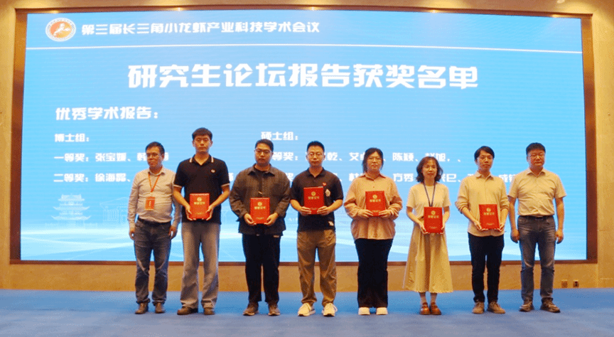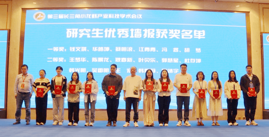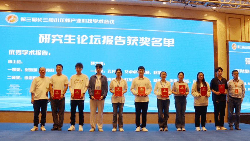 会议期间,江苏好润生物产业集团股份有限公司等多家企业与相关高校、科研院所达成初步产学研合作意向20余项,进一步推动了产学研用深度融合。我校硕士艾卓卓的《饲料脂肪水平对克氏原螯虾生长、体组成和肠道健康的影响》、杜友海的《温度与微塑料联合暴露对克氏原螯虾的复合毒性效应研究》分别获得优秀学术报告一等奖、二等奖,江青青、耿春新、陈景龙获得优秀墙报一等奖和二等奖。