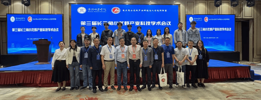 5月23日至25日,由盐城工学院发起的第三届长三角小龙虾产业科技学术会议在江苏淮安成功举办。中国科学院院士桂建芳、江苏省渔业协会会长张朝晖、长三角小龙虾产业联盟理事长朱站英、淮阴师范学院副校长张言彩,我校副校长、盐城市政协副主席丁成出席。海生学院院长彭斌、书记高留才,科技处副处长刘飞,长三角小龙虾联盟秘书长、水产动物营养与饲料研究所所长王爱民教授及团队博士於叶兵、杨文平、张武肖等20余人参加。来自全国小龙虾产业领域的专家、研究生、企业精英及养殖户等近500名代表齐聚一堂,以“产教融合绿色发展,新质生产力提质增效”为主题,围绕小龙虾苗种、营养与饲料、养殖技术、病害防治、精深加工等方面进行交流与探讨,共促进小龙虾产业绿⾊低碳⾼质量发展。
