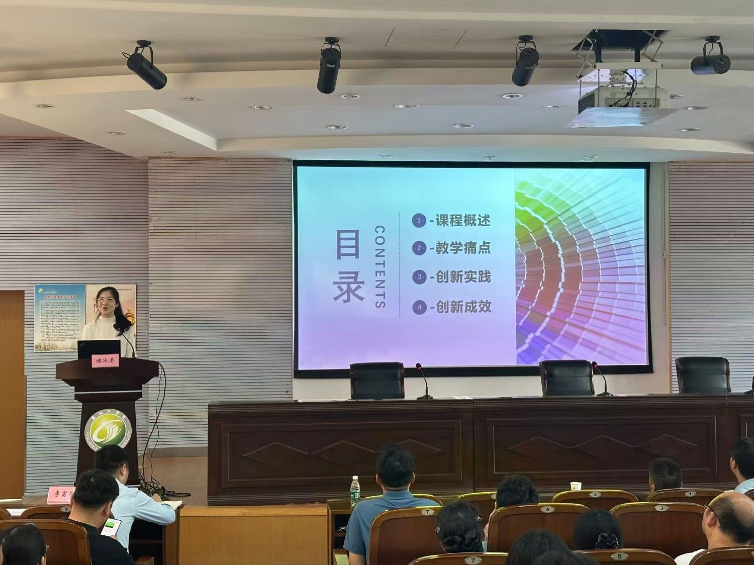 程冰莹以色彩与图案课程为例,作题为《织色入式 织色入时 织色入识》的报告,介绍课程教学过程中的痛点,进行思政、专业、创意三个层面的创新实践,为各位教师分享课程思政建设方面的经验以及获得的创新成效。