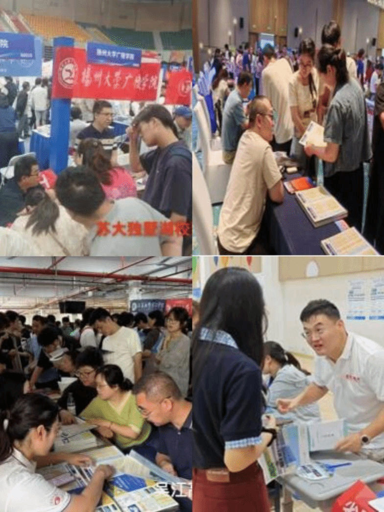 6月24 日高考成绩公布后,学院党政领导带队,5 个工作小组即刻奔赴泰州市区、姜堰、兴化等五地二十余所高中,通过三天密集宣传,以招生海报展示、政策手册发放、一对一志愿指导等形式,全方位解读学校优势学科、本科硕士培养体系及 2025 年招生新政。咨询现场考生及家长络绎不绝,招生团队针对专业分流规则、就业前景等高频问题,结合历年录取数据提供精准解答。