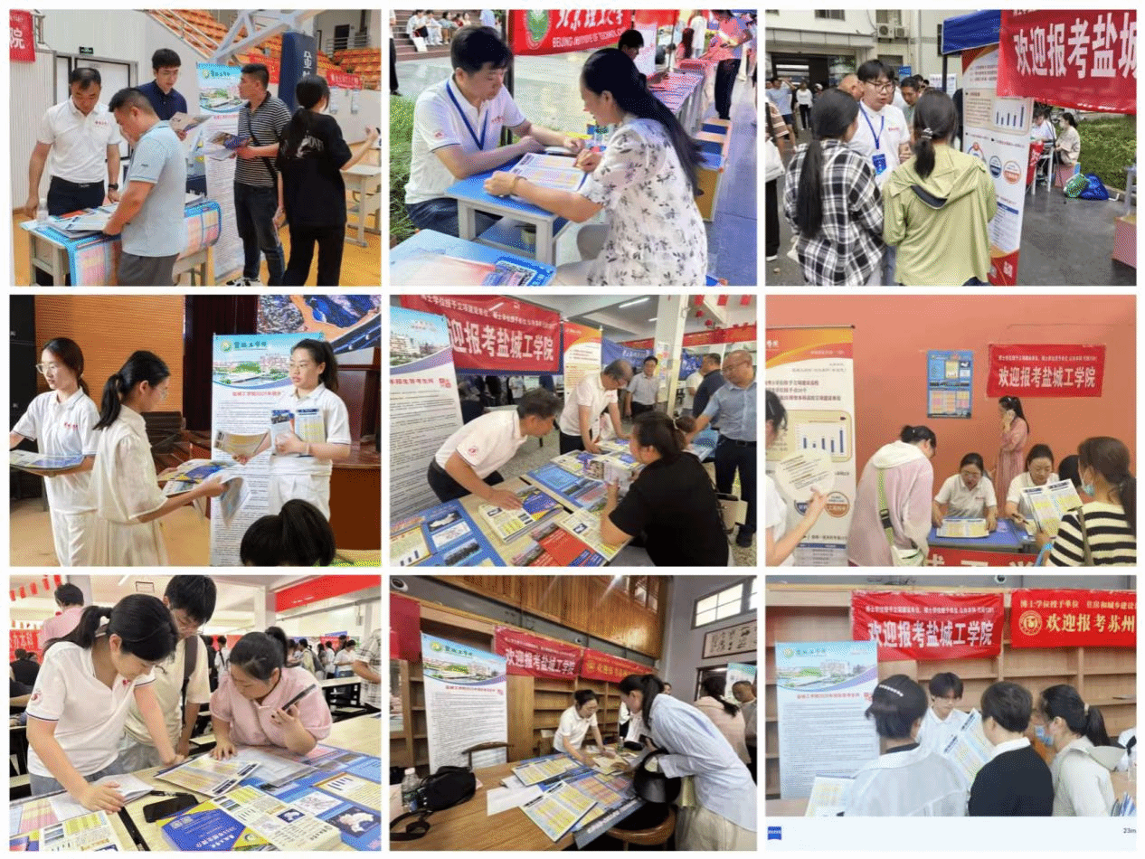6月25日至26日,学院党总支书记孟鑫、院长陈天明带队,21个招生小组共计40余名骨干教师们冒着酷暑,前往盐城各地生源中学,开展形式多样的招生宣传活动。他们向前来咨询的家长和学生认真细致地介绍了我校2025年招生计划,发放招生宣传材料千余份,通过“面对面”宣介活动帮助考生了解学校专业建设、师资力量、科研能力、就业前景、文化活动等多方面信息,为广大考生及家长现场答疑。