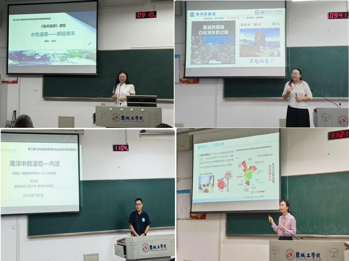 7月5日,第三届江苏省高校海洋类专业青年教师讲课竞赛在我校成功举办。本次活动由江苏省海洋学会主办,盐城工学院和南京师范大学共同承办。来自南京大学、南京师范大学、河海大学、南京信息工程大学、南京工业大学、江苏海洋大学、江苏科技大学、南通大学、南通理工学院、江苏第二师范学院、盐城师范学院和盐城工学院等10余所全省涉海高校的40余名专家和教师参加本次活动。