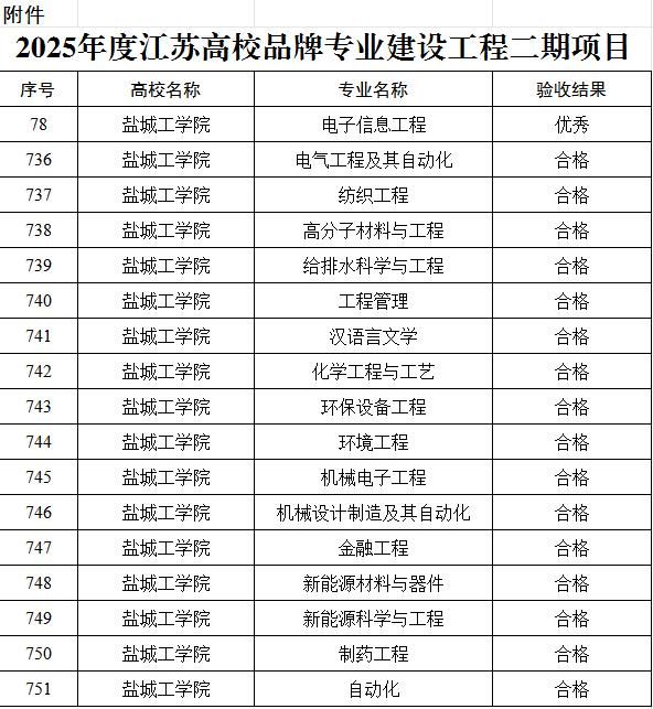 近日,江苏省教育厅正式公布了2025年江苏高校品牌专业建设工程二期项目验收结果,我校17个专业全部顺利通过验收,其中电子信息工程专业在此次验收中获得“优秀”等级。