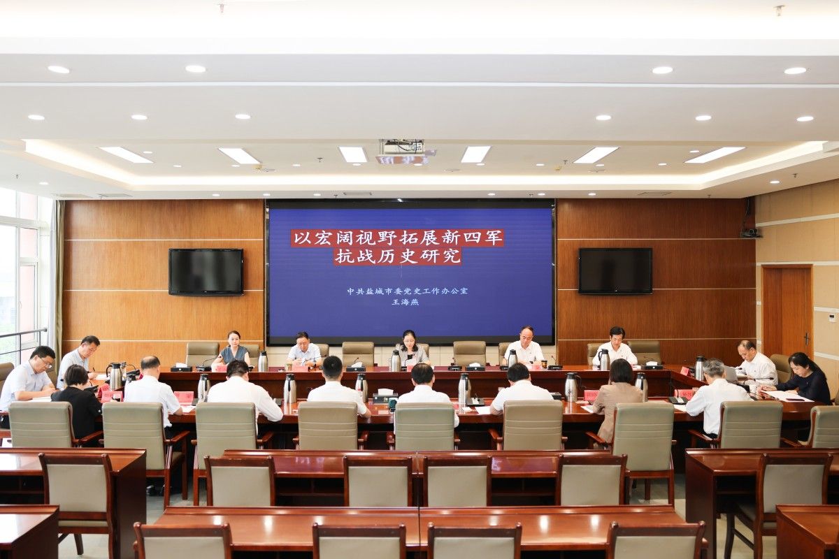参观结束后,中共盐城市委党史工作办公室副主任王海燕在希望大道校区行政楼9楼视频会议室作题为《以宏阔视野拓展新四军抗战历史研究》的专题辅导报告。王海燕结合自身观礼“九三”阅兵系列活动的亲身感悟,从新四军坚持抗战的鲜明特点、华中抗战的重要启示等方面,借助大量详实史料,深刻阐释了盐城作为新四军重建军部所在地,其抗战历程不仅是新四军发展史上的重要里程碑,更是华中敌后抗战从挫折走向胜利的关键转折点,承载着不可替代的历史价值。