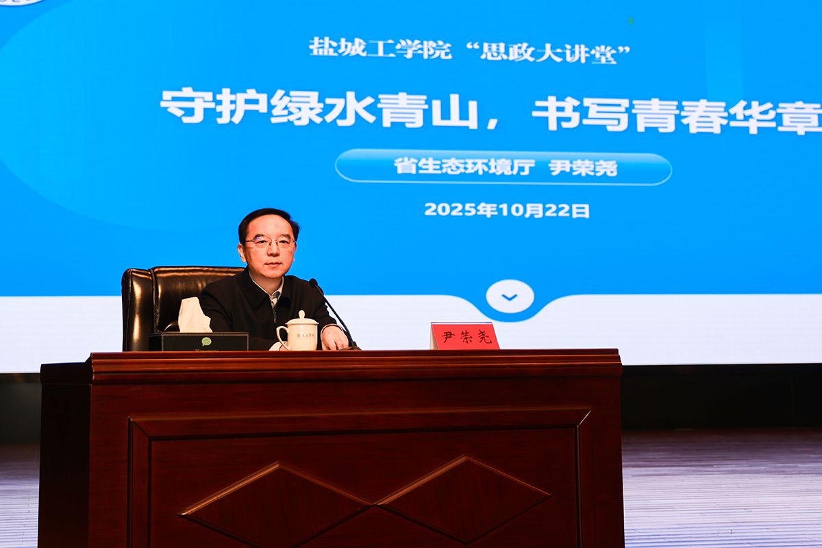 10月22日,江苏省生态环境厅党组成员、副厅长尹荣尧在我校希望大道校区行政楼报告厅以《守护绿水青山,书写青春华章》为题讲授思政课,校党委常委、副校长王伟主持。江苏省环境保护宣传教育中心有关负责同志,我校相关部门负责同志以及师生代表等500多人参加。
