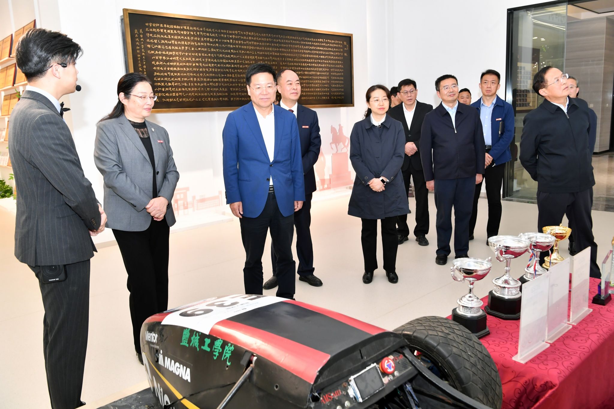 严汉平一行实地调研了我校江苏省模具智能制造工程技术研究中心和国家电投海上风电技术中心江苏分中心,现场察看了智能制造示范生产线、数字孪生与智能制造技术、海上风电仿真教室实验室等项目,并与教学科研人员深入交流,详细了解技术研发、产学研合作与成果转化进展等情况。在产教融合成果展厅,严汉平参观了学校产教融合成果展,听取了学校办学历史与发展成就汇报,并现场观摩了“梦之声”合唱团无伴奏混声合唱,观看了野马车队训练。严汉平指出,盐城工学院建校以来,在产教融合、校地协同上不断拓展,学科建设有特色,人才培养有突破,服务地方有成效,文化传承有底蕴,国际交流合作有亮点,为盐城经济社会发展作出了积极贡献。他强调,党的二十届四中全会对教育、科技、人才一体统筹作出系统部署,大学正是三者协同汇聚的核心枢纽;大学与城市是命运共同体,一座城市对待高校的态度,就是对待未来的态度,也决定着这座城市发展的高度,市政府将持续完善支持驻盐高校发展工作机制,持之以恒支持学校高质量发展,为学校加快争创一流应用型大学创造更好条件。