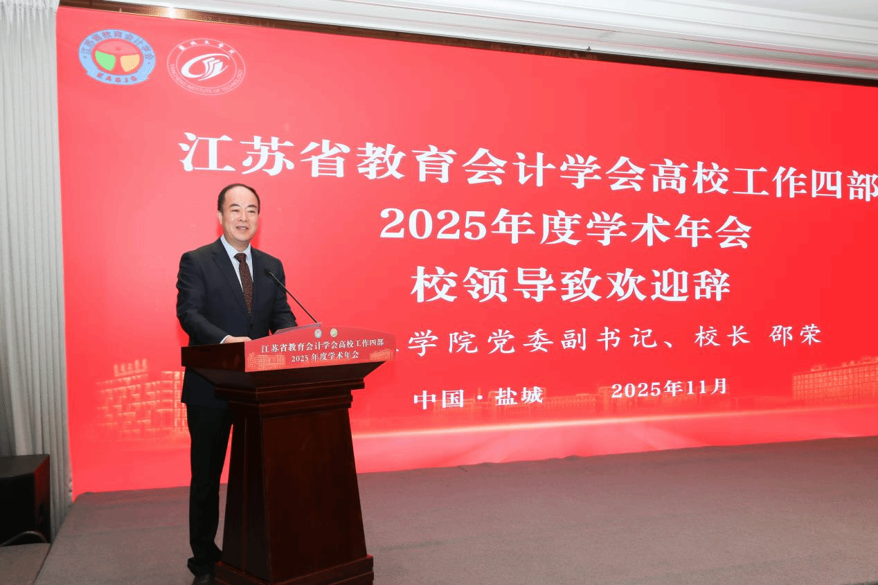 11月14日,江苏省教育会计学会高校工作四部2025年学术年会在盐城举办,省教育会计学会会长、省教育厅原二级巡视员周亚君,我校党委副书记、校长邵荣出席,来自徐淮盐连宿五个地区二十多所院校财务部门负责人及业务骨干70余人参会。本次年会由江苏省教育会计学会高校工作四部主办、盐城工学院承办。