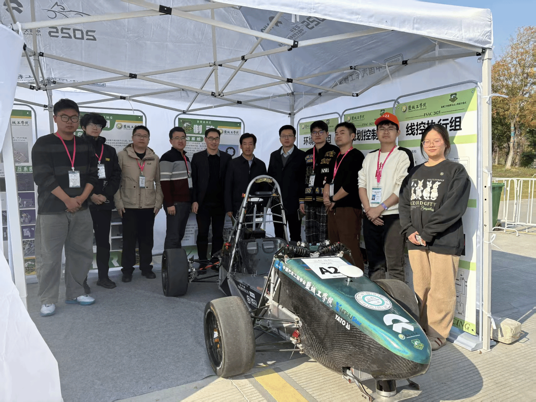 11月17日-23日,由中国科学技术协会指导、中国汽车工程学会与合肥市人民政府共同主办的2025“蔚来杯”中国大学生方程式系列赛事圆满落下帷幕。来自清华大学、吉林大学、同济大学、香港理工大学等国内外高校的82支电动车队和35支无人驾驶车队齐聚合肥,展开为期七天的精彩角逐。在这场汇聚百余支顶尖高校车队的高水平竞赛中,我校方程式赛车队以扎实的技术实力和“敢拼敢赢、精益求精”的信念迎难而上,续写辉煌篇章。最终,车队荣获中国大学生无人驾驶方程式大赛总成绩三等奖、中国大学生电动方程式大赛总成绩三等奖,指导教师获评“优秀指导教师”称号。