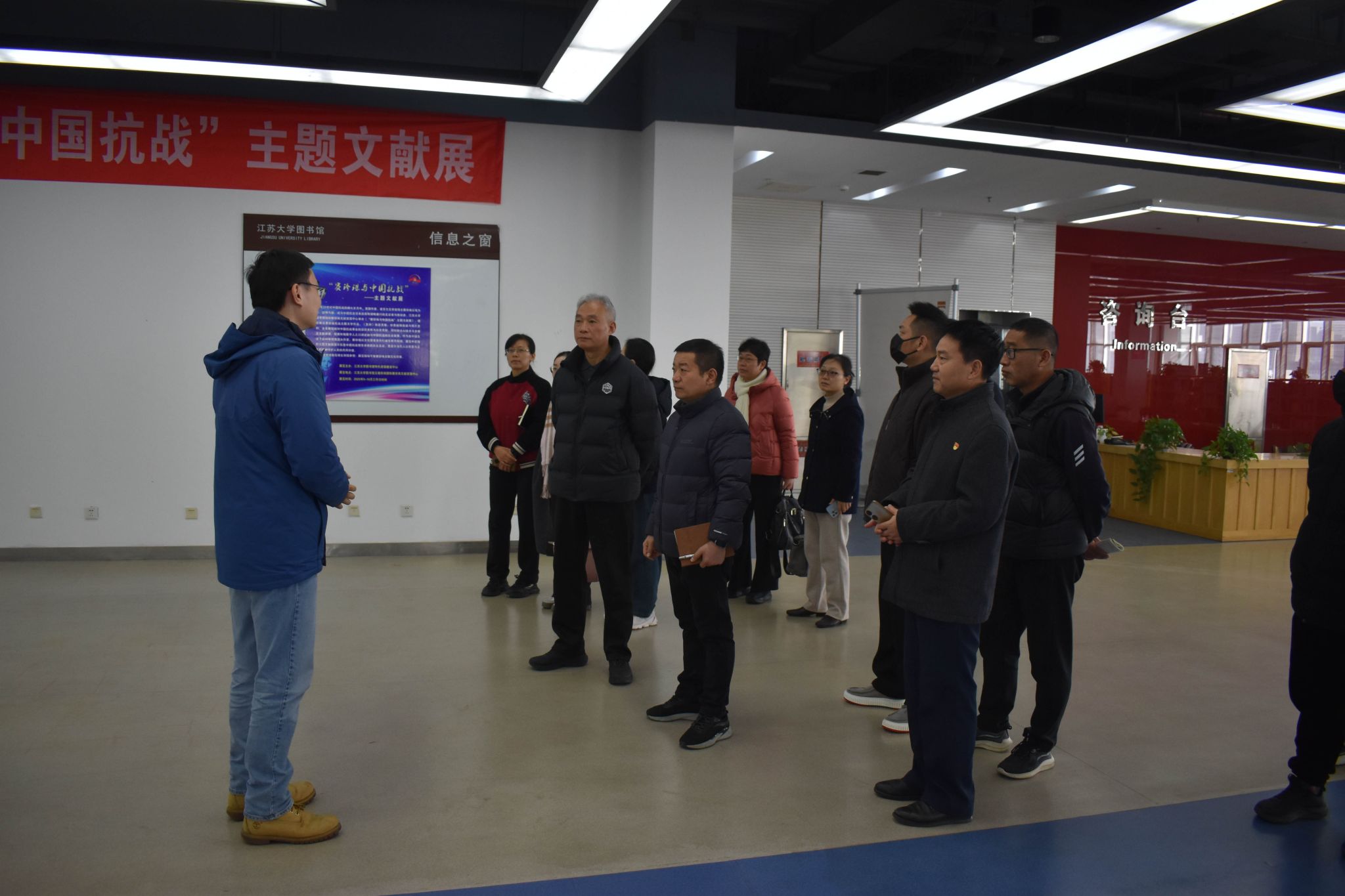 28日上午,图书馆党总支书记花爱军、馆长李明带队来到江苏大学图书馆调研,学习其在智慧化建设、信息素养教育、阅读推广工作等方面的先进经验和做法,重点就其特色馆藏建设方面进行了详细的了解和学习,并实地参观了“国际赛珍珠文献资源中心”“农业装备文献资源中心”“江大文库”“文心书屋”。