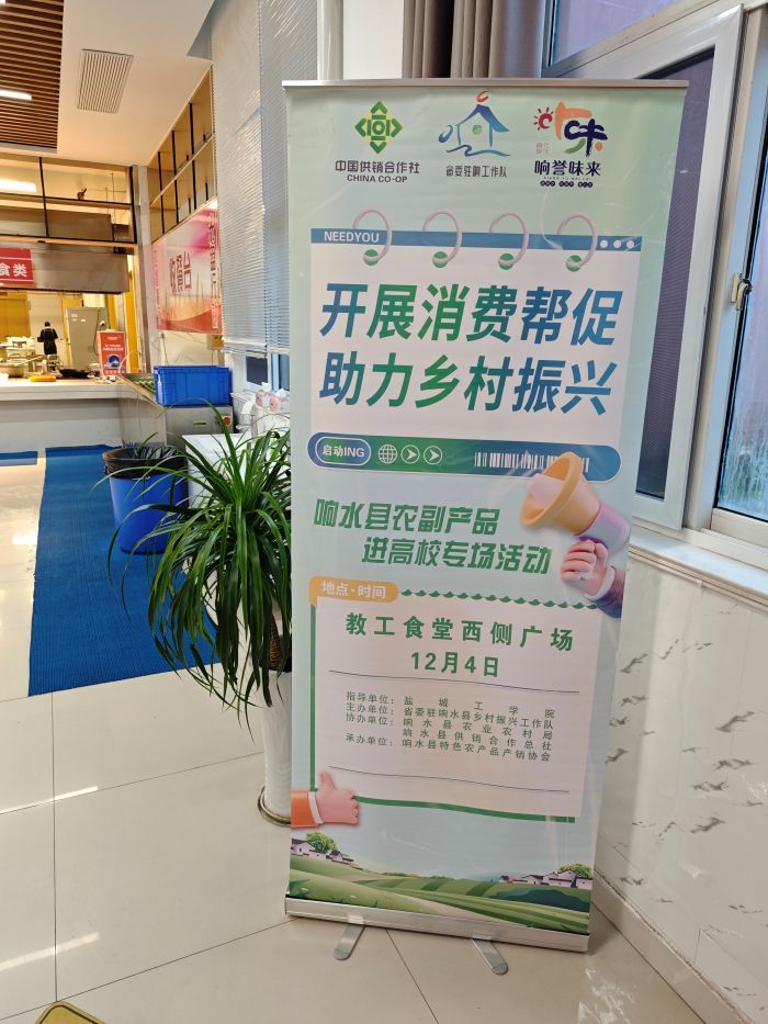 为深化校地协作、拓宽农副产品产销渠道,12月4日,响水优质农副产品进高校专场活动在我校南校区二期食堂西侧广场成功举办。响水县委副书记、省委驻响水县乡村振兴工作队队长冯树春,我校党委常委、组织部部长包雅玮,校工会主席徐新华等出席活动。