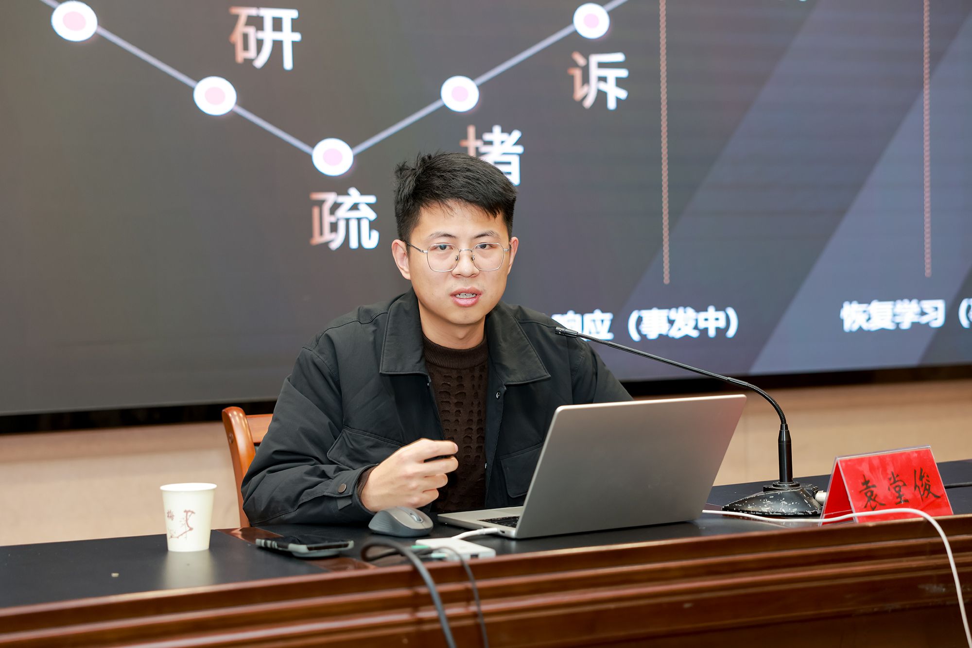 12月16日下午,学校在希望大道校区机械馆报告厅召开网络舆情应对处置专题培训会,邀请人民网高级舆情分析师、金鸽舆情观察室主任袁堂俊作专题报告。党委常委、宣传部部长奚新国主持,意识形态重点领域相关单位负责人、各二级学院党组织负责人、全体专兼职辅导员等200余人参会。