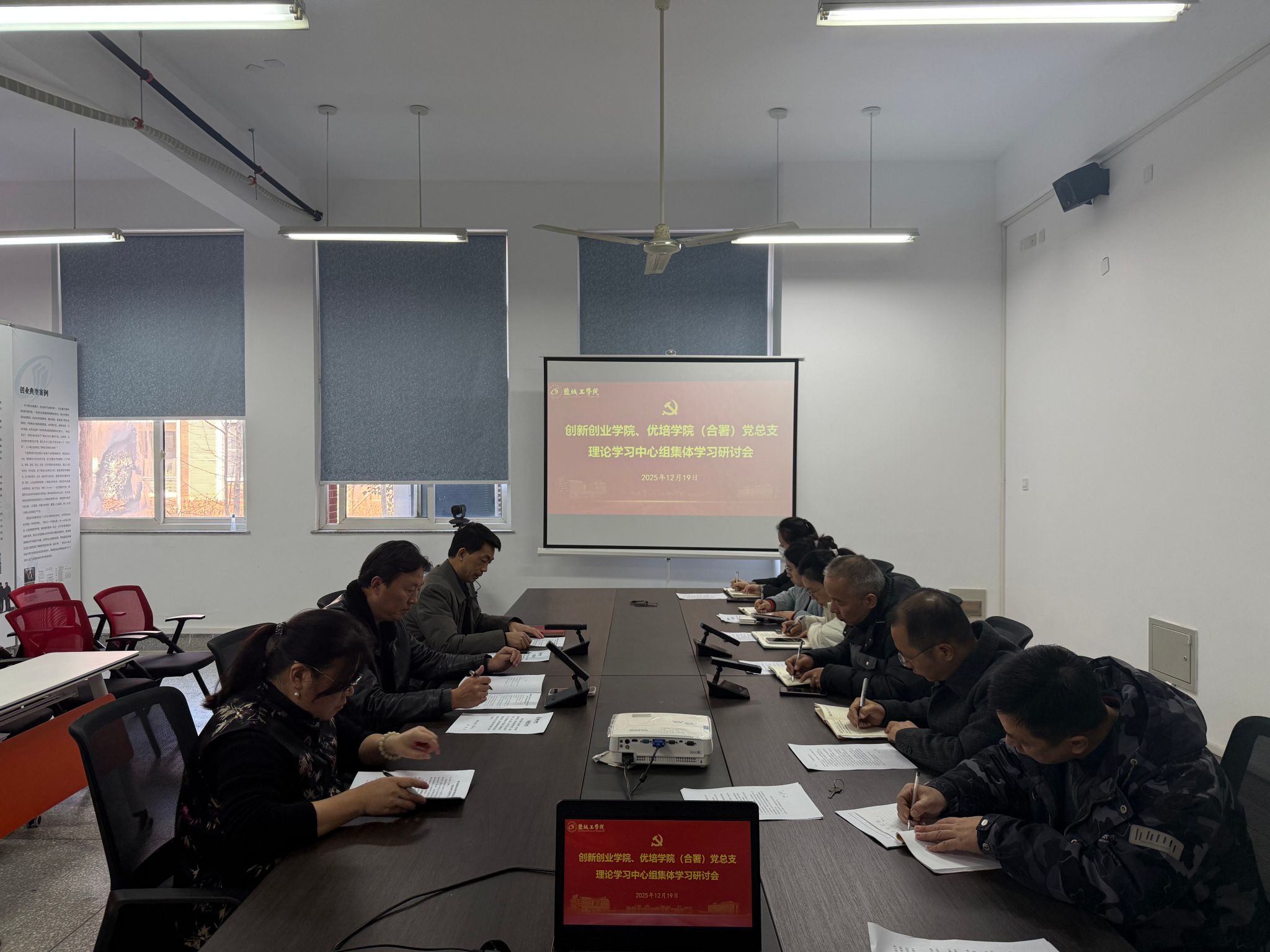 12月19日上午,在希望大道校区仁和楼A202东会议室,创新创业学院、优培学院(合署)党总支理论学习中心组召开12月份集体学习会,围绕《推进党的自我革命要做到“五个进一步到位”》(习近平,《求是》2025年第23期)、《中国共产党思想政治工作条例》等内容开展学习研讨。学院党总支书记魏巍主持会议,中心组全体成员参加。