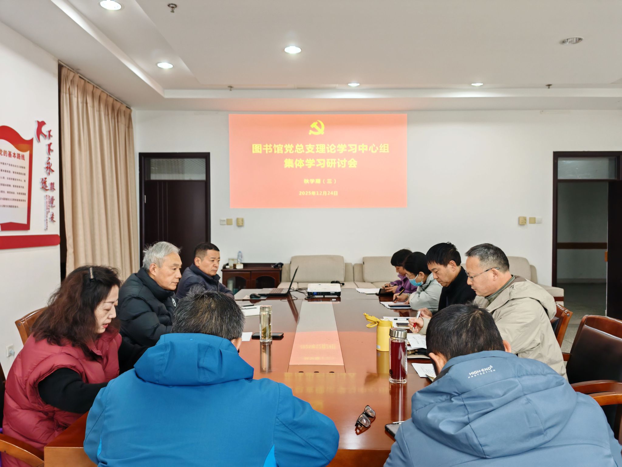 12月24日下午,图书馆党总支理论学习中心组在希望大道校区图书馆D805会议室召开12月份集中学习研讨会。会议由党总支书记花爱军主持,理论学习中心组全体成员参加。