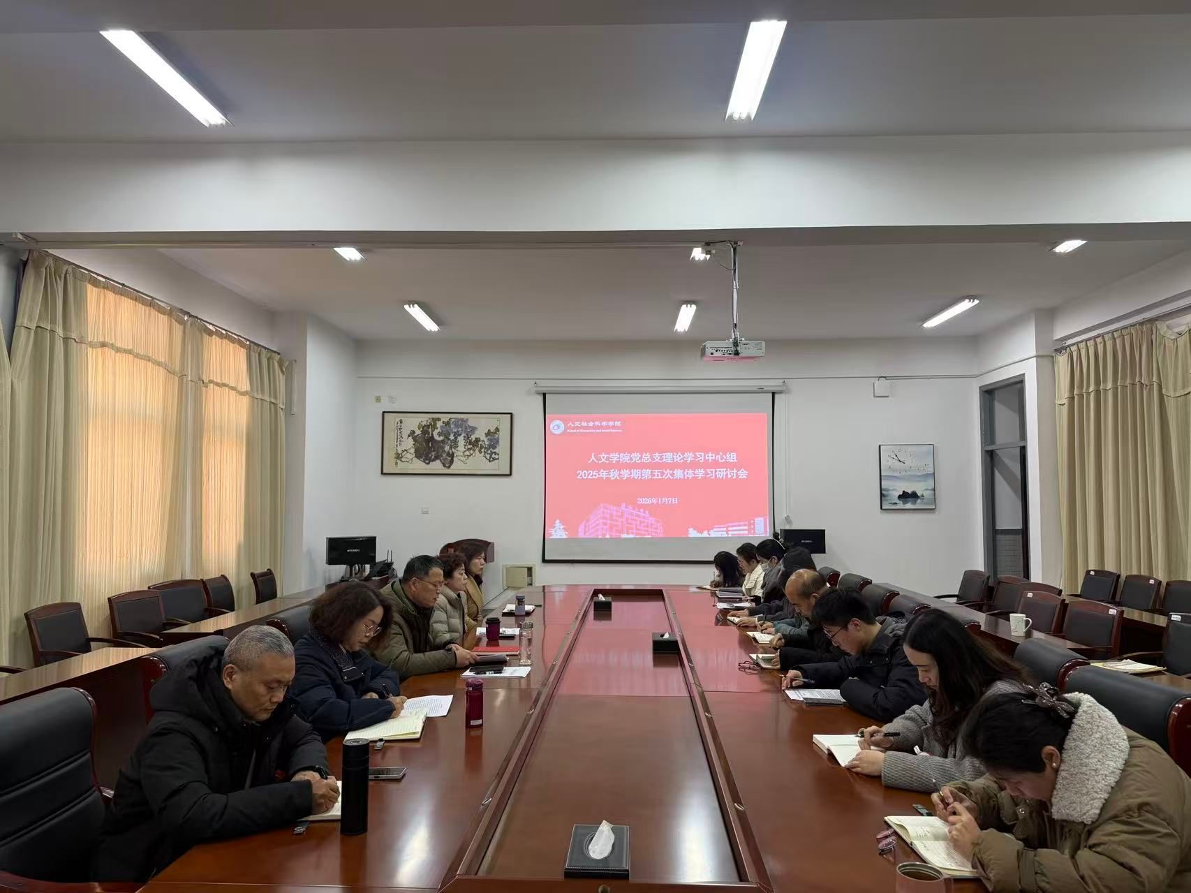 1月7日下午,在仁和楼A304会议室,人文学院党总支理论学习中心组召开2025年秋学期第五次集体学习研讨会。会议由学院党总支书记何登溢主持,党总支理论学习中心组成员参加。