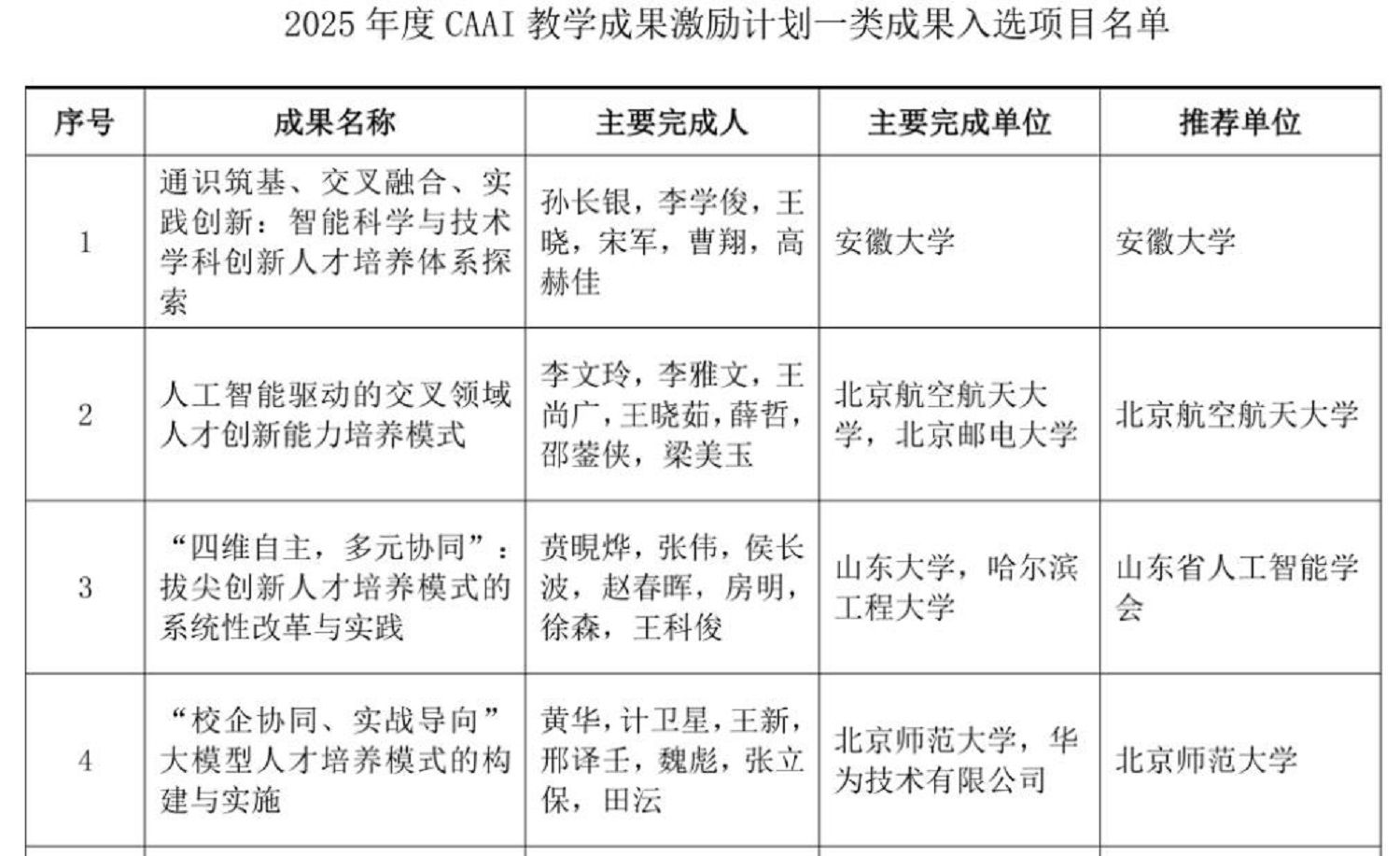 我校徐森教授参与申报教学成果入选2025年度CAAI教学成果激励计划一类成果