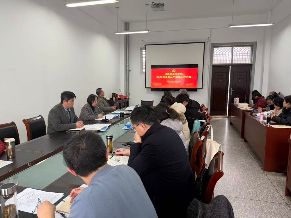 会上,唐浩传达学习全国、全省教育系统全面从严治党工作会议和学校2026年全面从严治党工作会议精神,深刻阐释了新时代新征程推进全面从严治党的重大意义,引导全院党员干部教师提高政治站位,强化责任担当。并结合学院工作实际,对2026年全面从严治党重点工作进行周密部署。他强调,要筑牢政治忠诚,强化政治引领。持续深化理论学习,坚持不懈用党的创新理论凝心铸魂,严守政治纪律和政治规矩。要压实管党责任,健全责任体系。严格落实党委主体责任、书记第一责任人责任、班子成员“一岗双责”,层层传导压力、拧紧责任链条,形成齐抓共管、协同发力的全面从严治党工作格局。要夯实基层党建,提升组织活力。严格规范党内政治生活,加强党支部标准化规范化建设,强化党员教育管理监督,发挥党员先锋模范作用,推动基层党组织全面进步、全面过硬。要严明纪律作风,涵养清风正气。持之以恒落实中央八项规定及其实施细则精神,加强师德师风建设,筑牢廉洁自律防线。要坚持严管厚爱,强化教育警示,营造风清气正的育人环境和学术氛围。