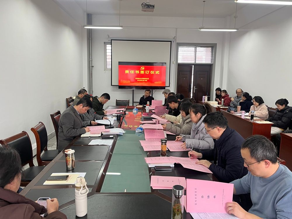 会前,学院领导班子成员分别与科级以上干部、各专业系部及中心负责人、各党支部书记签订《全面从严治党目标责任书》,进一步压实管党治党政治责任,明确各层级党风廉政建设工作任务与要求。
