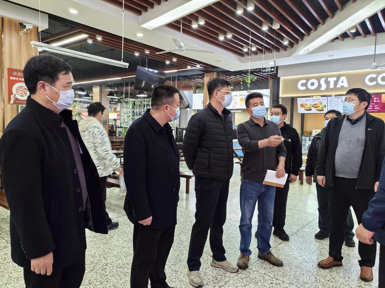 集团一行采取“四不两直”的方式,先后来到食堂、快递中心、门面房、环卫中心、学生宿舍、卫生所等关键场所。每到一处,都仔细检查消防设施设备运行、用电用气安全规范、食品原材料储存及环境卫生状况,并认真听取相关负责人关于隐患排查整改、日常管理制度执行、品质提升专项举措的汇报。