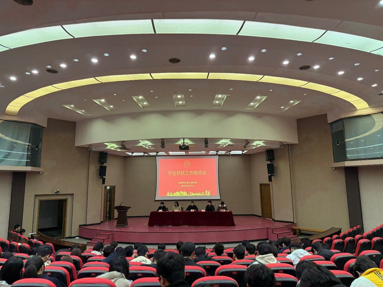 4月9日,环境学院在北校区五四报告厅举行学业帮扶工作推进会,党总支书记孟鑫、副书记王丽坤,全体专职辅导员以及169名结对帮扶成员、被帮扶学生参加。会议由学工办主任沈丹主持。