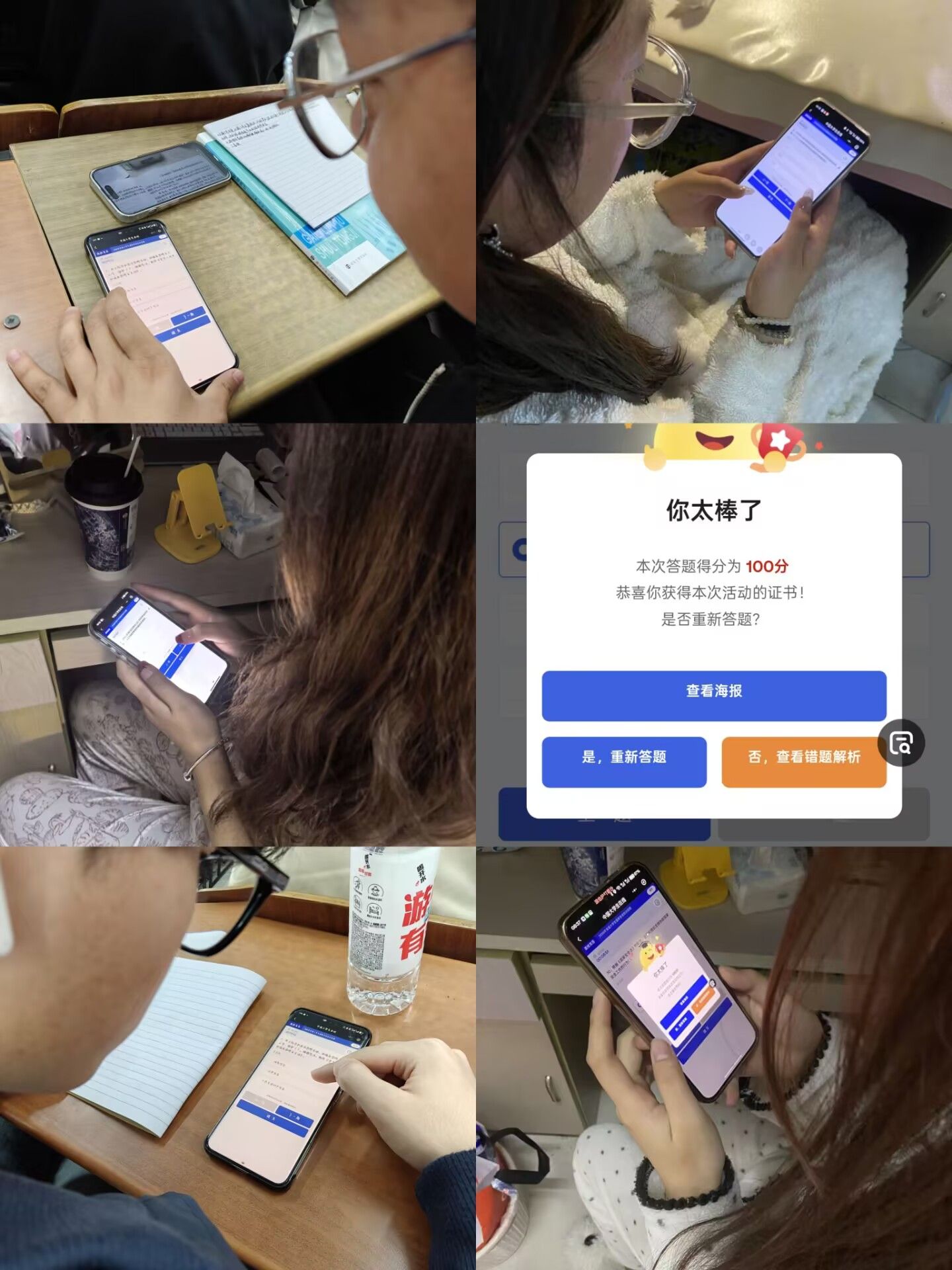 学院同步组织全体学生参与由中国大学生在线发起的“全国大学生国家安全知识答题”活动。活动以线上答题形式,全面普及国家安全相关知识,重点科普国家安全教育核心内容,引导大学生深入学习国家安全知识,坚定维护国家政权安全、制度安全、意识形态安全。通过答题活动,帮助全体师生全面、系统、深入理解新时代国家安全的内涵与外延,进一步树牢“国家安全、人人有责”的责任理念,营造出“人人关心国家安全、人人参与国家安全”的浓厚校园氛围。