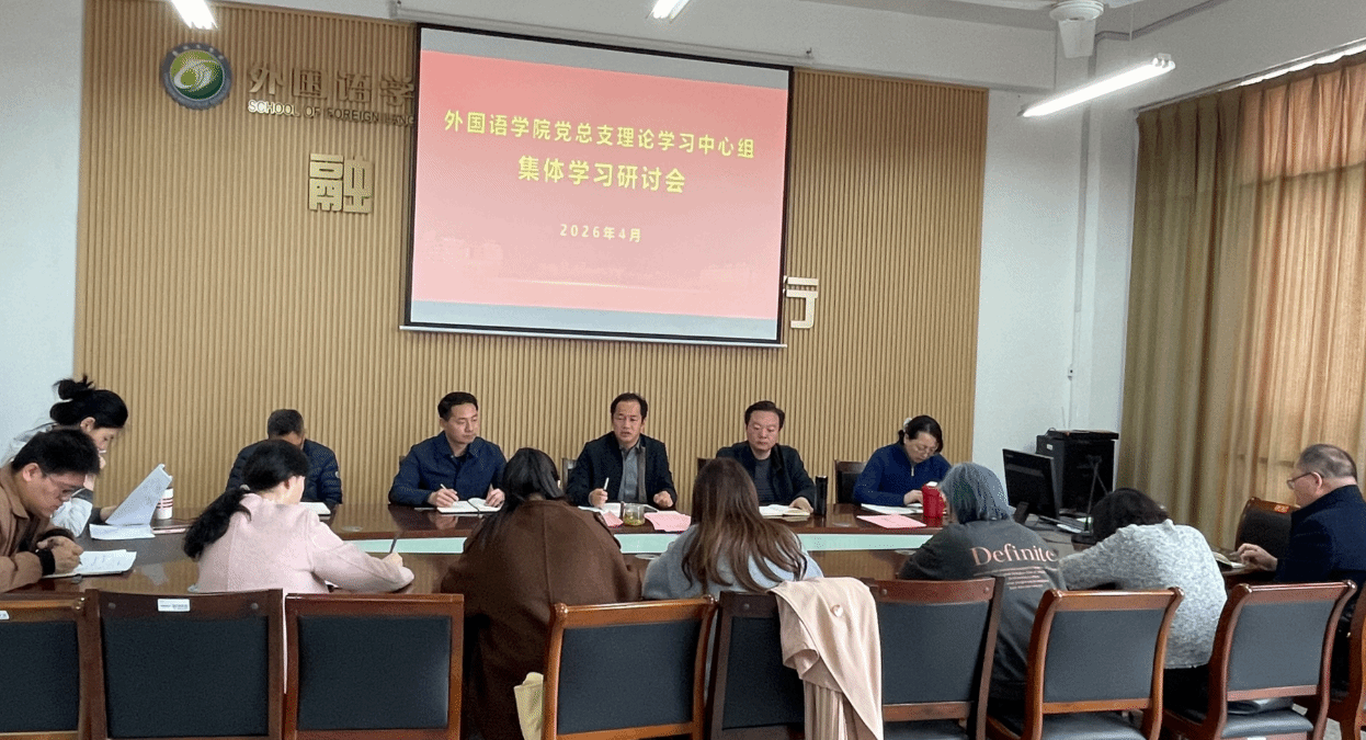 4月20日上午,外国语学院党总支理论学习中心组在南校区润美楼A404会议室召开4月份集体学习研讨会。会议由学院党总支书记刘正华主持,党总支理论学习中心组成员参加。