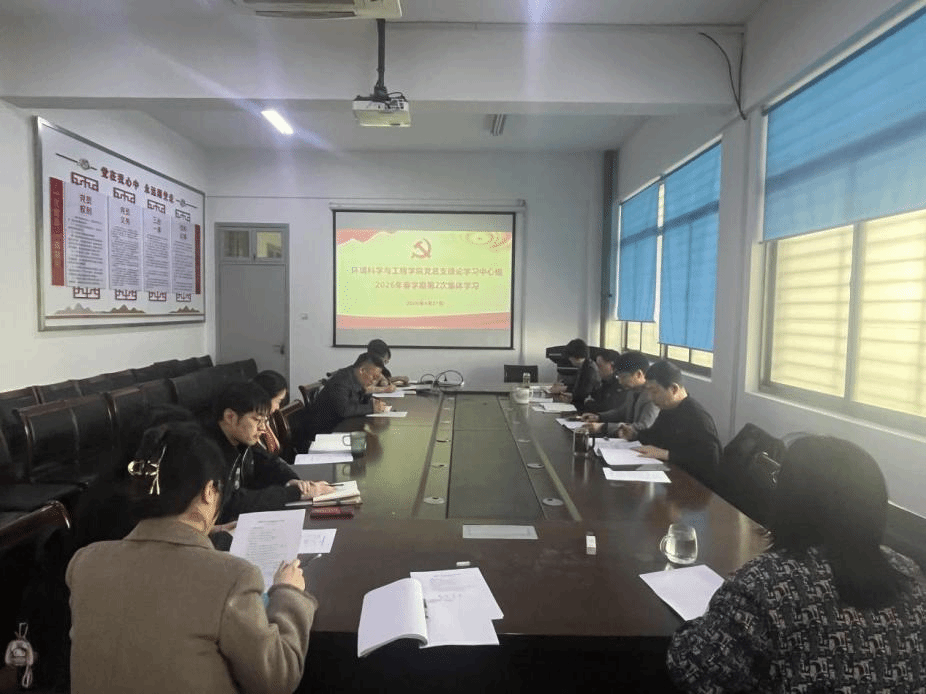 4月27日上午,环境学院党总支理论学习中心组召开2026年春学期第二次集体学习会。党总支书记孟鑫主持,党总支理论学习中心组全体成员参加。