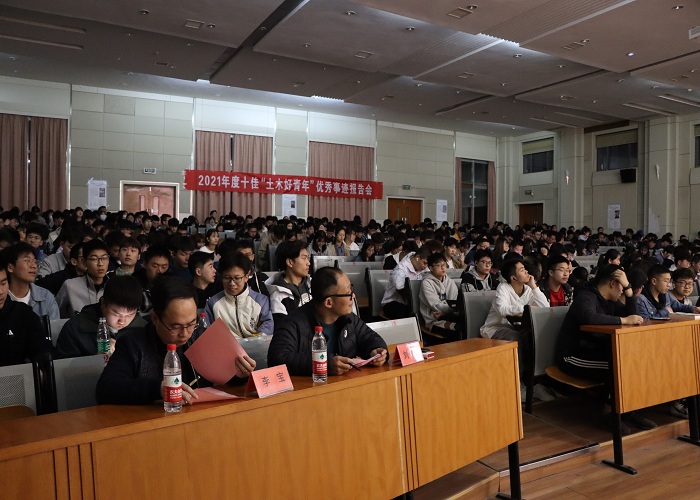 为传承“培养厚德重行的土建人”的育人理念,集中展现新时代优秀土木学子的精神风貌,激发广大学生树立远大理想、坚定理想信念,4月8日晚,土木工程学院在北校区化工楼报告厅举办2021年度十佳“土木好青年”优秀事迹报告会。学院师生代表等500余人参加。