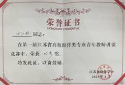 本次竞赛由江苏省海洋学会主办,南京师范大学承办,共吸引了全省11所高校、39名青年教师参加比赛。海生学院积极组织青年教师报名参赛,通过院内选拔和专项指导等方式提高参赛教师的讲课水平。通过参加本次竞赛,加强了我校海洋类专业与省内其他高校相关专业的交流与合作,提高了我校海洋类专业青年教师教学能力和水平,提升了我校海洋类专业的省内影响力。