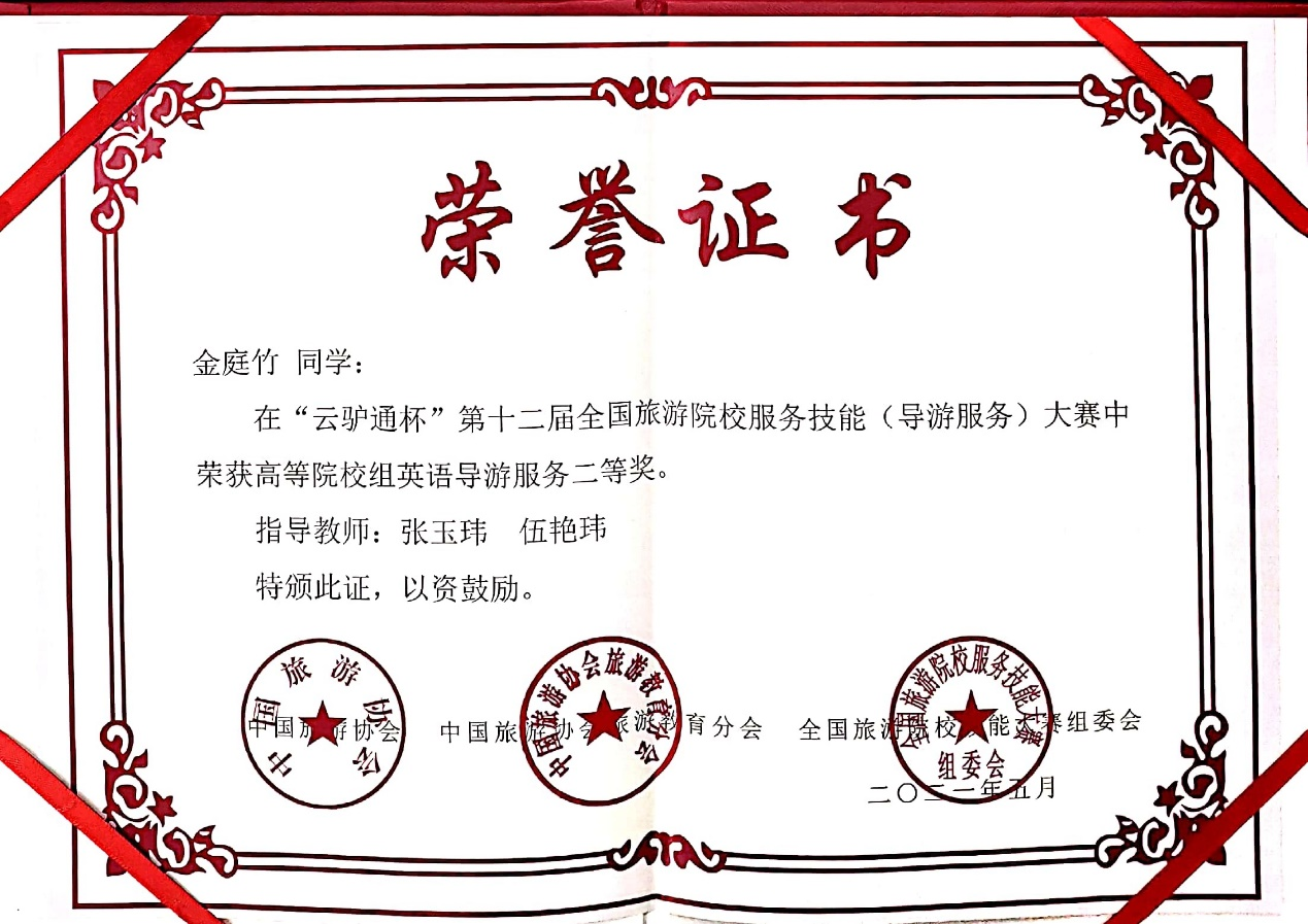 全国旅游院校服务技能(导游服务)大赛由中国旅游协会指导、中国旅游协会旅游教育分会主办。比赛设普通话导游服务和英语导游服务两个项目,每个赛项分别包括理论考核、导游讲解和才艺展示。本届大赛更加突出对接行业需求,增强旅游职业教育适应性,致力于为我国新时代文旅发展战略提供专业人才支撑。