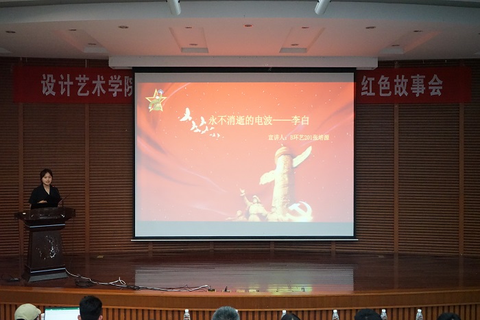 6月3日晚7点,设计艺术学院在润美楼报告厅举行 “传承红色基因,争做优秀学子”红色故事会。学院党总支书记胡凌霞,党总支副书记杨军,环境艺术设计专业教师朱金华,学工办主任杨滢,团委副书记葛平参加活动并担任评委,全体2020级265名同学参加。
