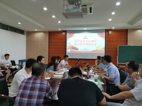 6月9日下午,建材研究院党总支在北校区知达楼AE209会议室组织开展党史学习教育专题党课学习。建材研究院第二党支部书记赵云峰以“深学党章不忘初心,践行党章勇担使命”为题给全体党员上专题党课。党总支副书记邓育新主持,全院党员参加学习。