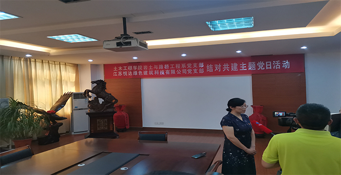 6月22日,土木工程学院岩土与路桥工程系党支部与江苏悦达绿色建筑科技有限公司党支部开展结对共建主题党日活动。学院党委书记顾志兰、副院长王照宇和江苏悦达绿色建筑科技有限公司副总经理陈明岸、季春潮等出席活动,岩土与路桥工程系党支部书记、系主任李富荣主持活动,支部全体党员和学生党员代表参加活动。