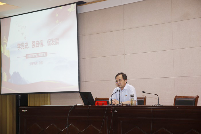 6月23日下午,在南校区机械馆报告厅,机械优集学院党委书记孙雷为学院全体师生党员上题为“学党史,强自信,促发展”的主题党课,校党史学习教育巡学督学第一指导组组长张建中现场聆听,机械优集学院党委副书记秦卫兵主持。