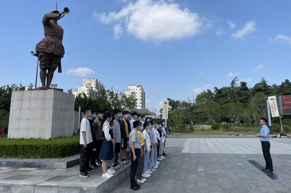 7月1日下午,在新四军纪念馆前,优培学院党总支书记王伟以《铭记历史,不忘初心》为题讲党史学习教育专题党课。学院全体师生党员和入党积极分子参加。