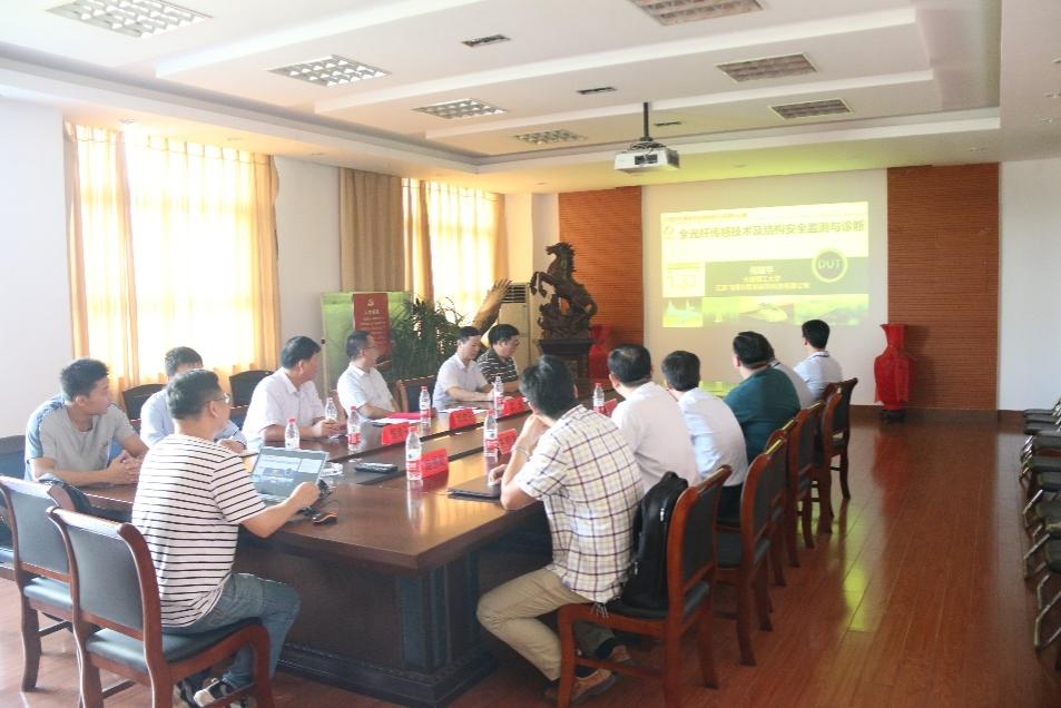 聘任仪式后,学院召开了光纤光栅FRP筋集成应用技术研讨会。何建平作了关于全光纤传感技术及结构安全监测与诊断的学术报告。报告围绕重要基础设施安全问题,介绍了当前结构安全监测“星-空-地-体”一体化监测的趋势;针对传感器使用寿命匹配结构服役寿命以及感知性能稳定性等问题,介绍了基于光纤光栅传感技术、分布式光纤布里渊传感技术和分布式光纤振动传感技术的多系统监测与集成方法,纤维增强树脂封装的光纤传感器以及在高铁轨道、岩溶塌陷、边坡、基坑方面的模型试验及工程示范等。