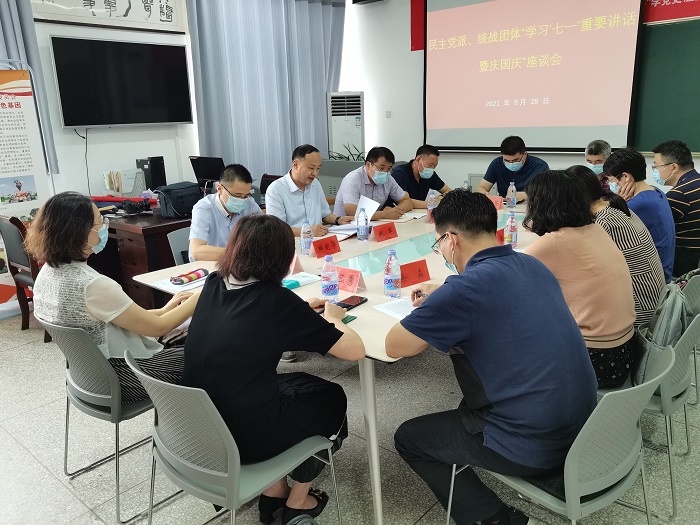 9月28日下午,学校在南校区仁和楼“盟员之家”召开民主党派、统战团体负责人座谈会,深入学习贯彻习近平总书记在庆祝中国共产党成立100周年大会上的重要讲话精神,共迎国庆佳节。受校党委副书记薛浩委托,校党委常委、统战部部长姚军主持会议并讲话,学校民主党派、统战团体负责人及党外人士代表参加会议。