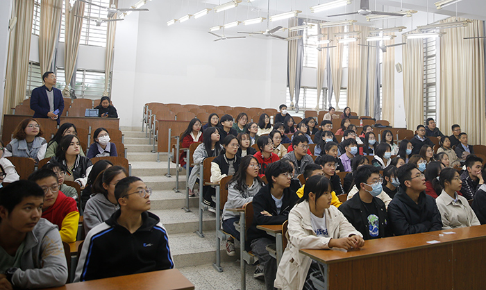 吕富、梁慧星、傅润泽等专业系主任和老师们依次介绍了海洋、生物、食品和医学专业的基本情况、历史沿革、特色优势、师资团队以及专业人才培养方案等,深入阐述了各专业研究方向及专业课程设置、社会地位及未来发展,以及优秀校友案例。老师们还从考研和就业等方面重点强调了专业的就业前景和方向,帮助同学们尽早树立考研目标,明确职业生涯规划,现场解答了同学们初次接触所学专业的种种困惑。
