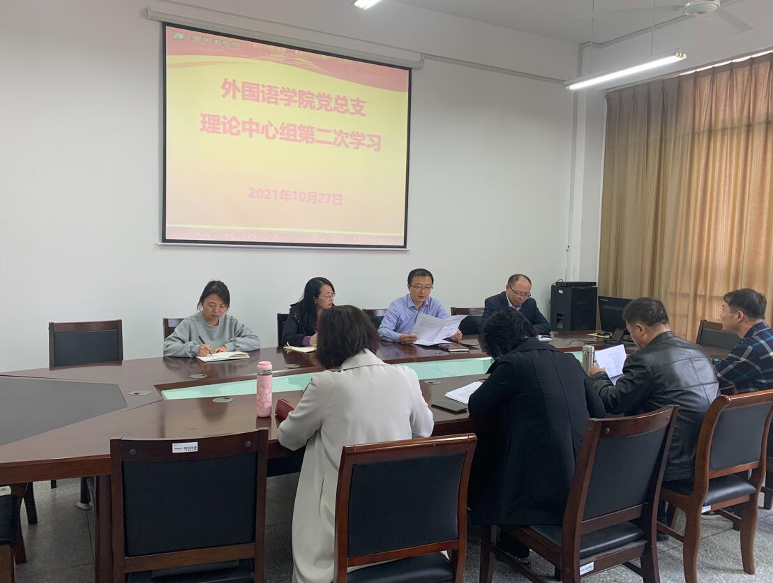 10月27日下午,外国语学院党总支理论学习中心组在南校区润美楼A404会议室组织开展2021年秋学期第二次集中学习,党总支书记谷文华主持,教工一支部书记许家进作重点发言,党总支理论学习中心组全体成员参加。