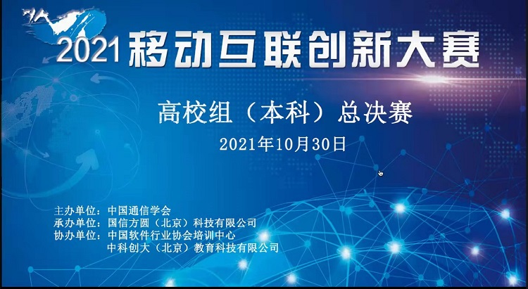 10月30日-31日,2021(第七届)年全国移动互联创新大赛总决赛在钉钉线上举行。经过线上演讲、ppt展示、评委提问等环节,由我校材料科学与工程学院交通工程系钟栋青、韦凌翔、杜建周老师指导,胡化鹏、胡莹莹、陈慧娴、赵洪旭、孔龙龙、杨锦诚等同学完成的作品《基于视频数据的路侧不规范停车识别系统》获得三等奖。