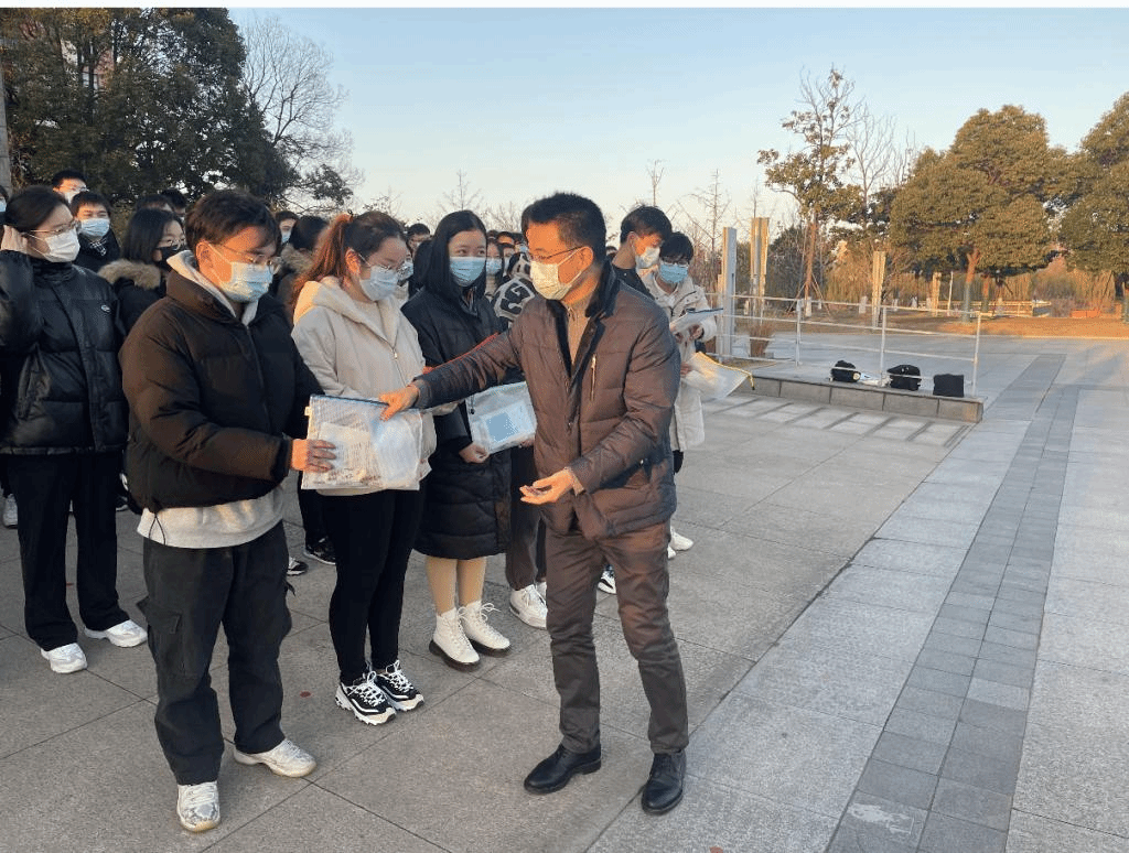王伟亲切地询问同学们考研备考情况,并提醒大家及时添加衣物,注意保暖,合理饮食,科学作息,调整心情,轻装上阵。随后为同学们发放爱心礼包,礼包中有着口罩,暖宝宝,巧克力和文具等物品,每位同学同时也都收到了一份充满浓浓祝愿的贺卡,这是对他们无限的鼓励,祝福和期待。